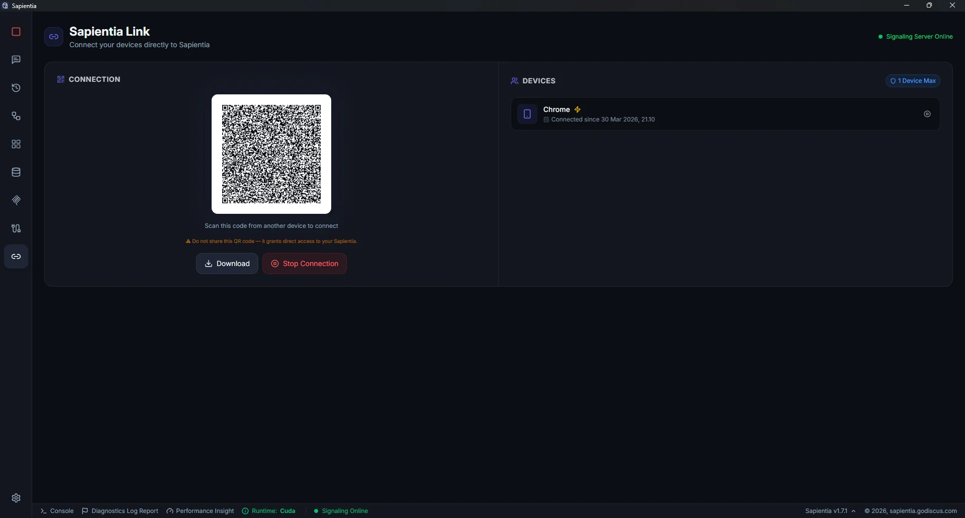 In an era where AI increasingly relies on cloud servers, we offer a different approach. Sapientia runs entirely on your device—no data leaves your computer, no subscriptions required, and it works offline.