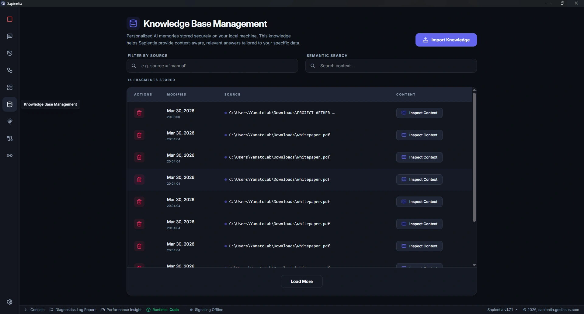 Built on local-first principles, Sapientia ensures your data remains under your control while delivering powerful AI capabilities.